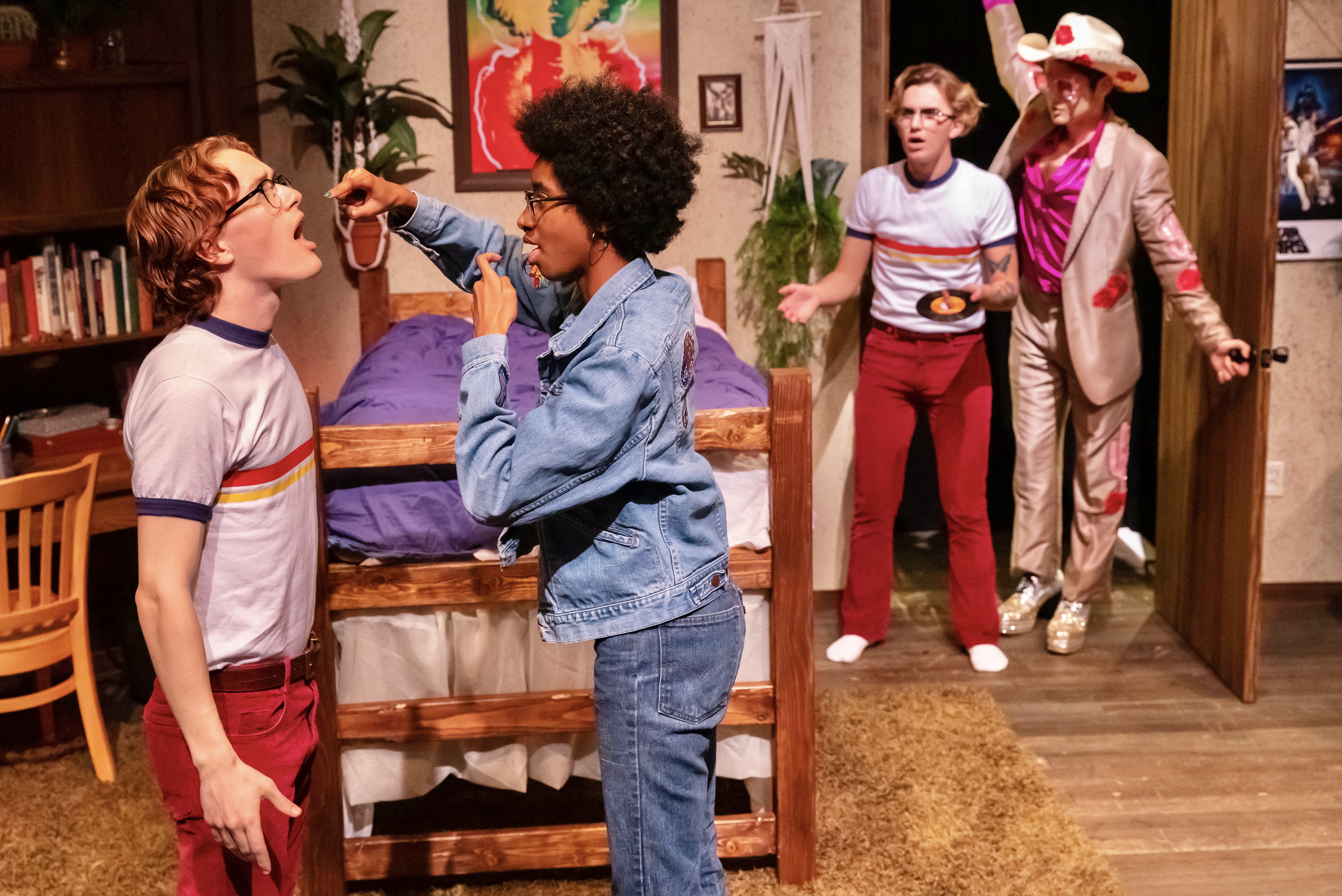 It's 1978 in small town South Texas and Freddy just dropped acid in order to hype himself up to make whoopie with the hot chick in his dorm room and prove to himself and everyone else that he indeed likes hot chicks. He doesn't. He's actually madly in love with his hunky roommate Greg who walks around in nothing but a towel. Luckily for him, his drug induced Elton John sex fantasy has come to life to help him plot the perfect scheme to get rid of this girl and bed Greg. It's a swinging key-party fantasia packed with penis puppets, line dancing, and the one and only Miss Dolly Parton! Get ready for a disco-extravaganza you won't soon forget!